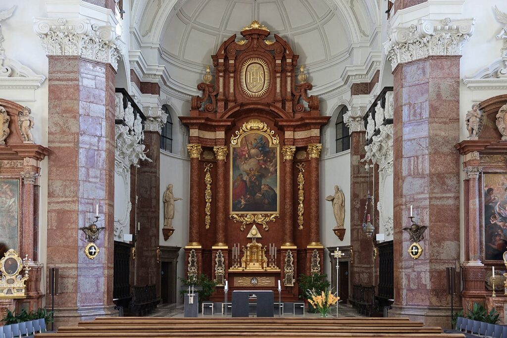 La Iglesia de los Jesuitas es la primera gran iglesia barroca construida en Suiza al norte de los Alpes (1666-1677). Los jesuitas la erigieron durante la Contrarreforma para impresionar y atraer fieles católicos, como respuesta al protestantismo austero. El resultado es un interior suntuoso con estucos de Torricini, frescos del techo de Brügger que narran la vida de San Francisco Javier, y decoración policromada en tonos rosa y naranja con detalles dorados.