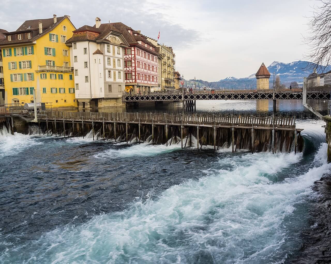 Haz un recorrido por la ciudad para apreciar la fuerza de las masas de agua alimentando una antigua planta hidroeléctrica con tecnología más nueva, ubicada en medio del río Reuss y el lago Lucerna. Esta experiencia te conecta con la continuidad histórica y la evolución tecnológica de Suiza de una manera muy tangible.