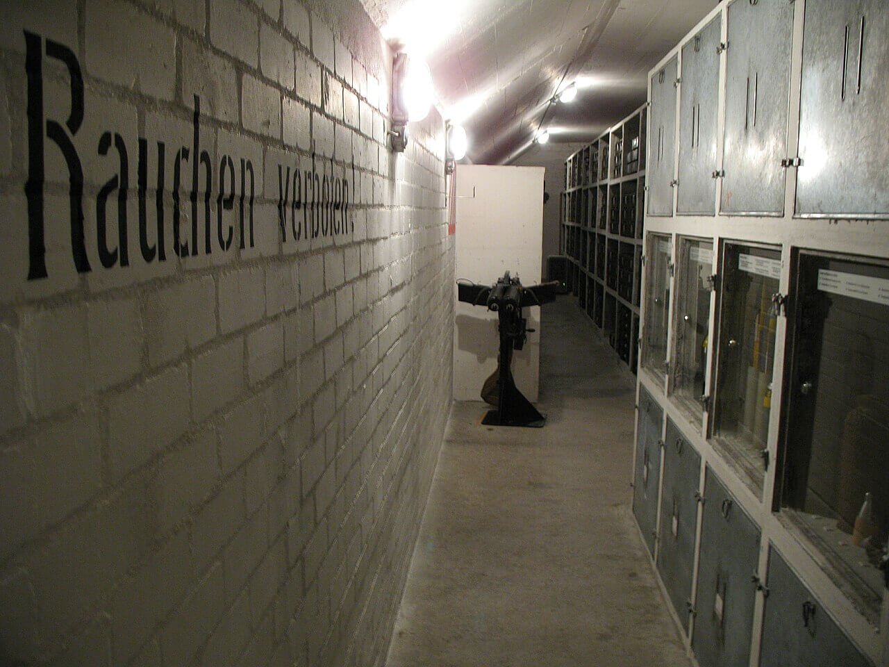 El interior de la Fortaleza de Fürigen conserva prácticamente intacto el equipamiento original de los años 40, ofreciendo una ventana auténtica al pasado. Durante el recorrido, los visitantes pueden explorar: