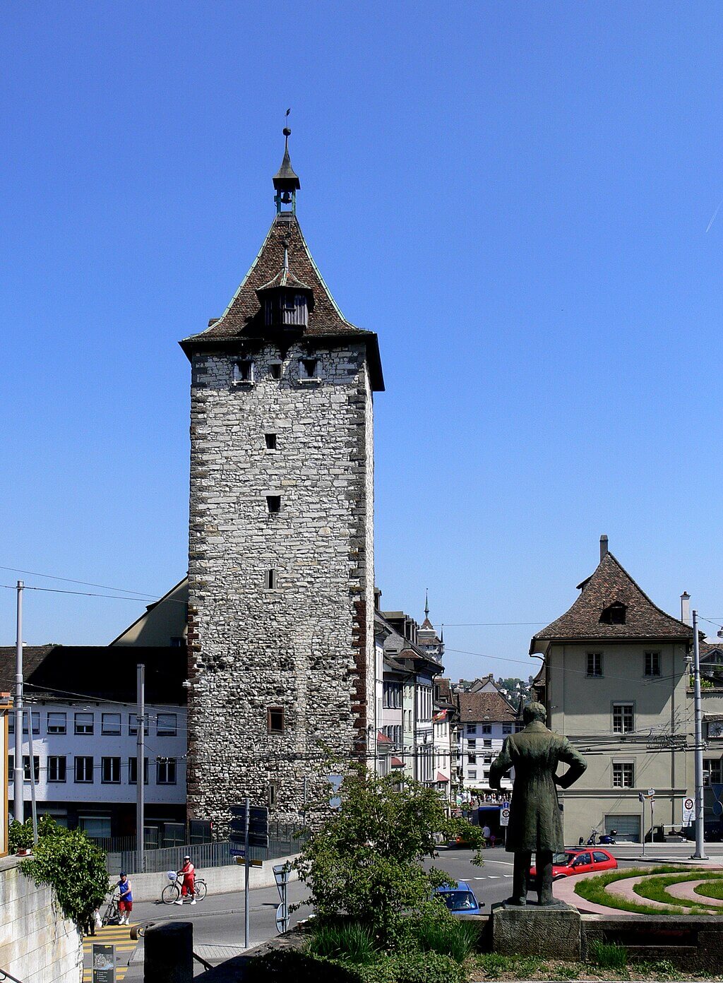 En aquella época, las cataratas del Rin obligaban a los barcos a descargar sus mercancías y transportarlas por tierra. Todo ese tráfico comercial pasaba necesariamente bajo este arco. La ciudad comprendió su valor estratégico y adquirió la torre en 1461.